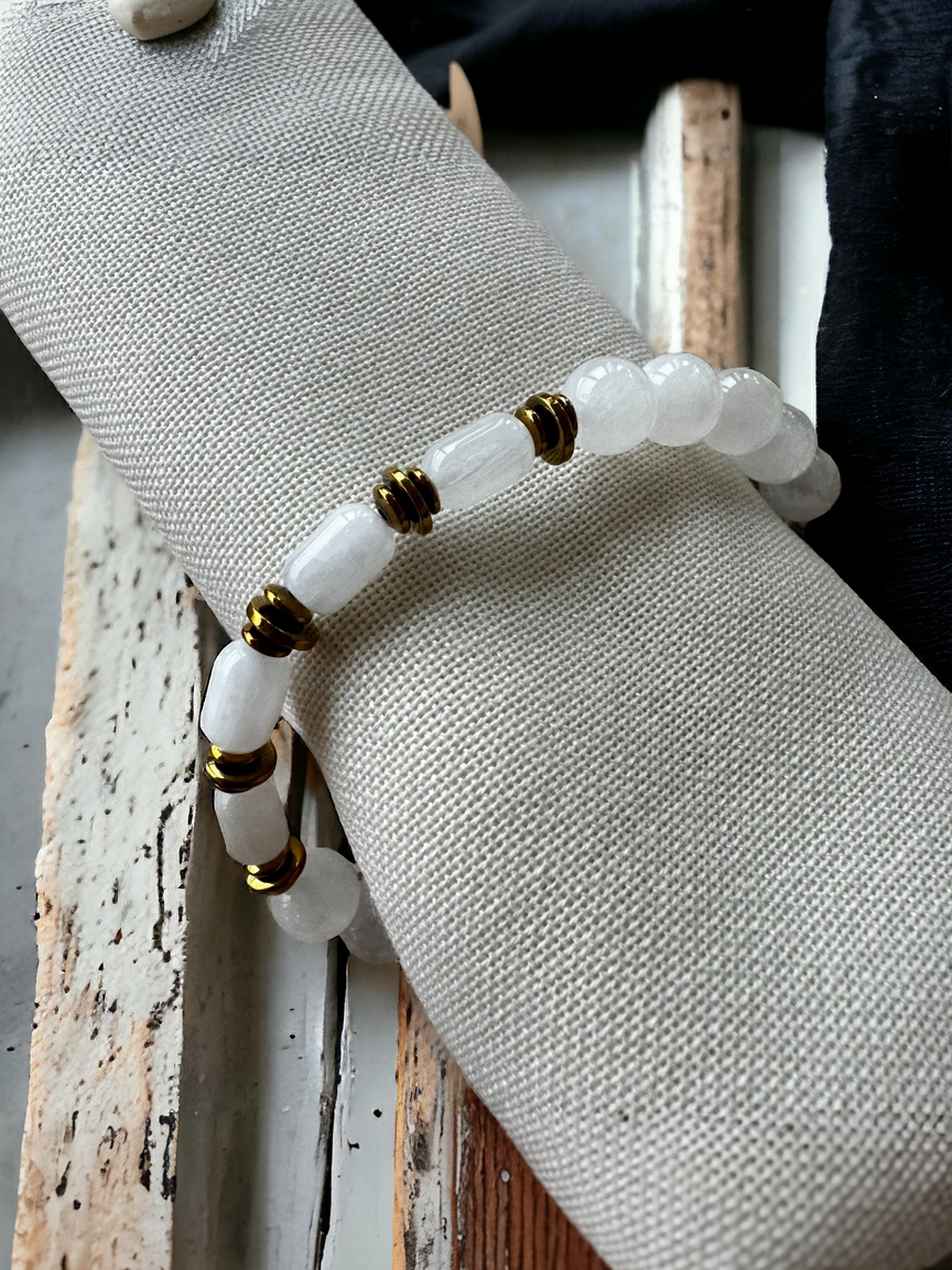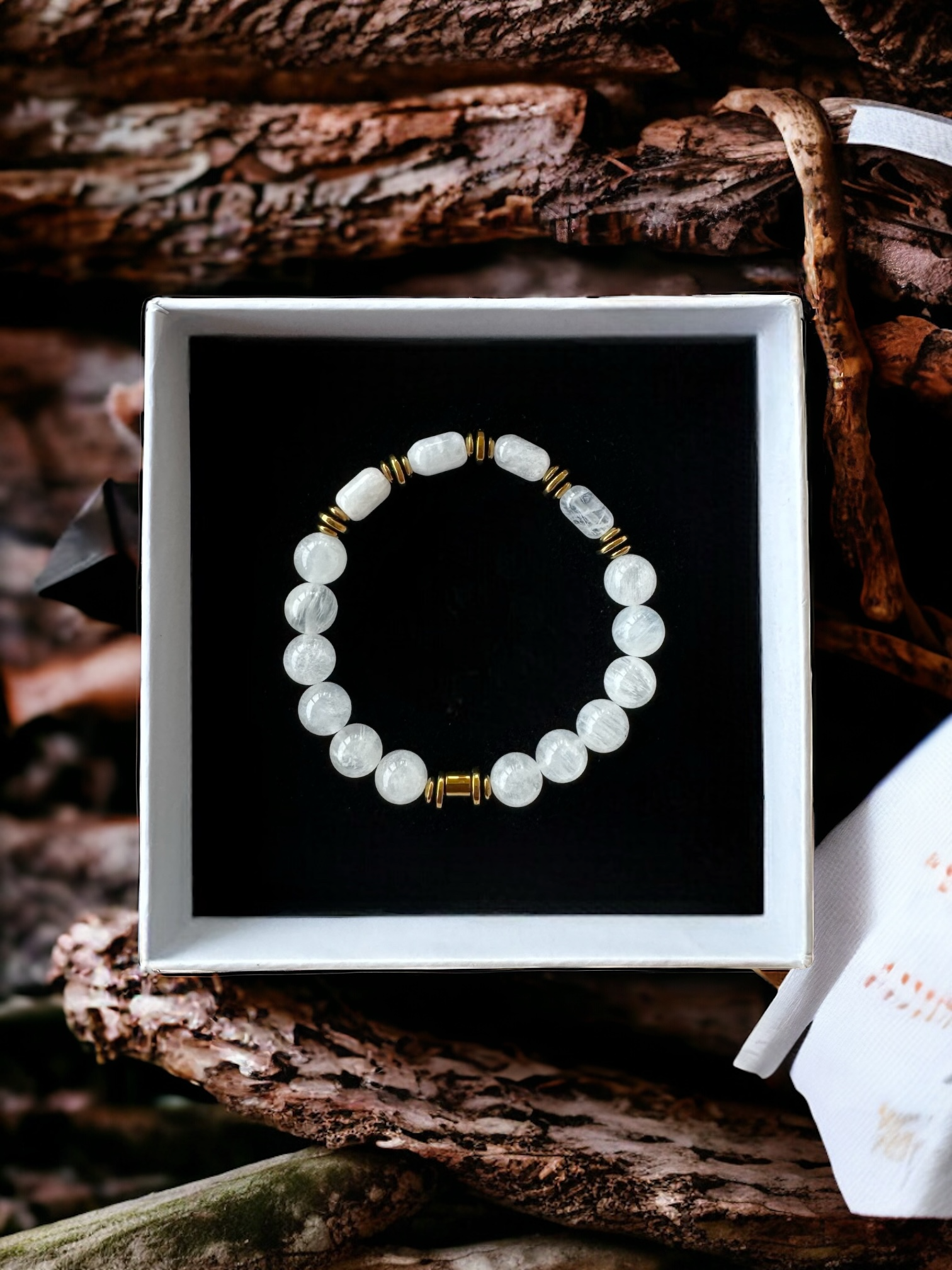 İki farklı kesim 8 mm ve 6 mm ölçülerinde, AAA yüksek kalite birinci sınıf Ay Taşları ile hazırlanmıştır.