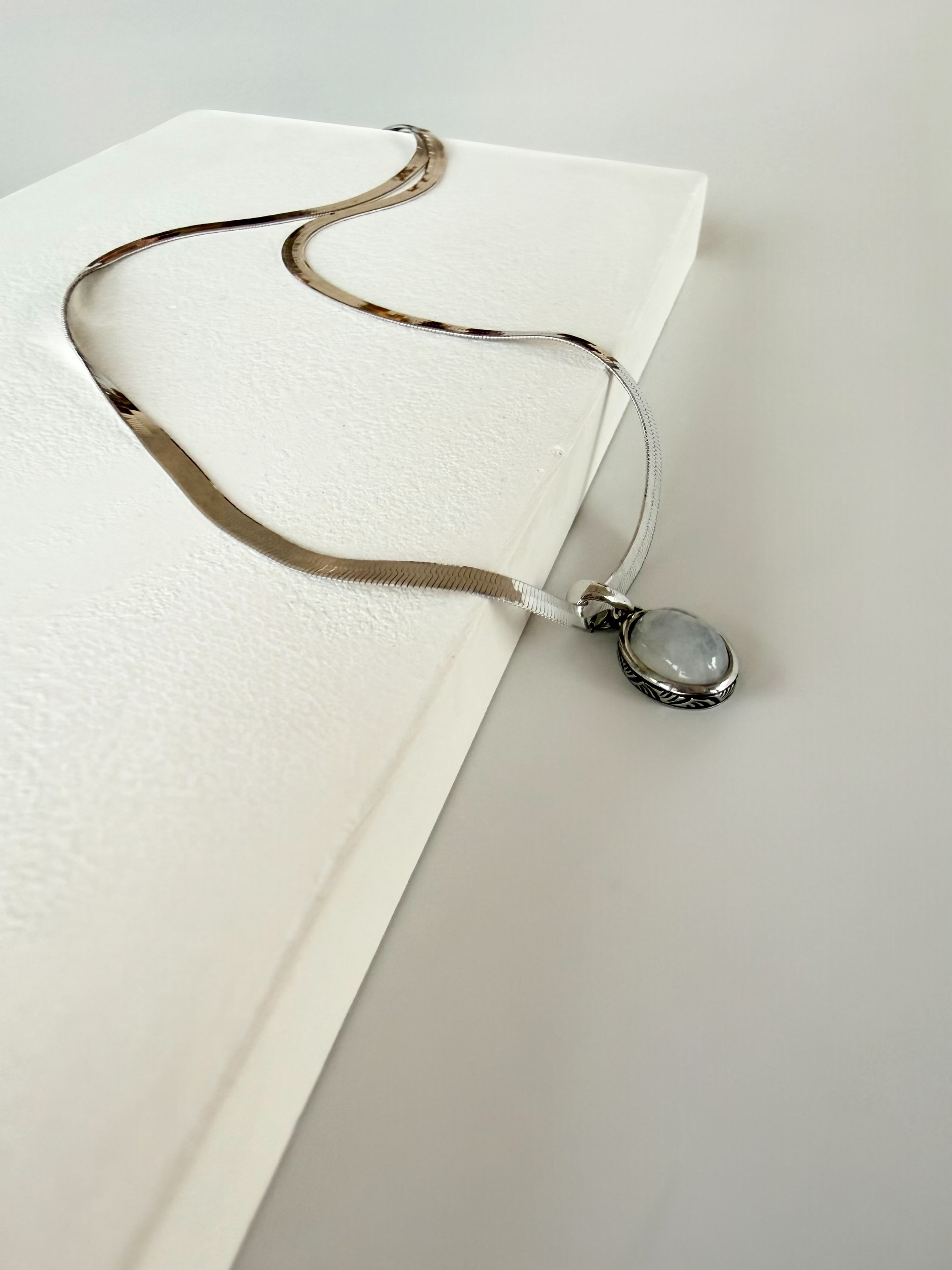Ay taşı kolye ucu: Genişliği 1 cm, uzunluğu 1,5 cm