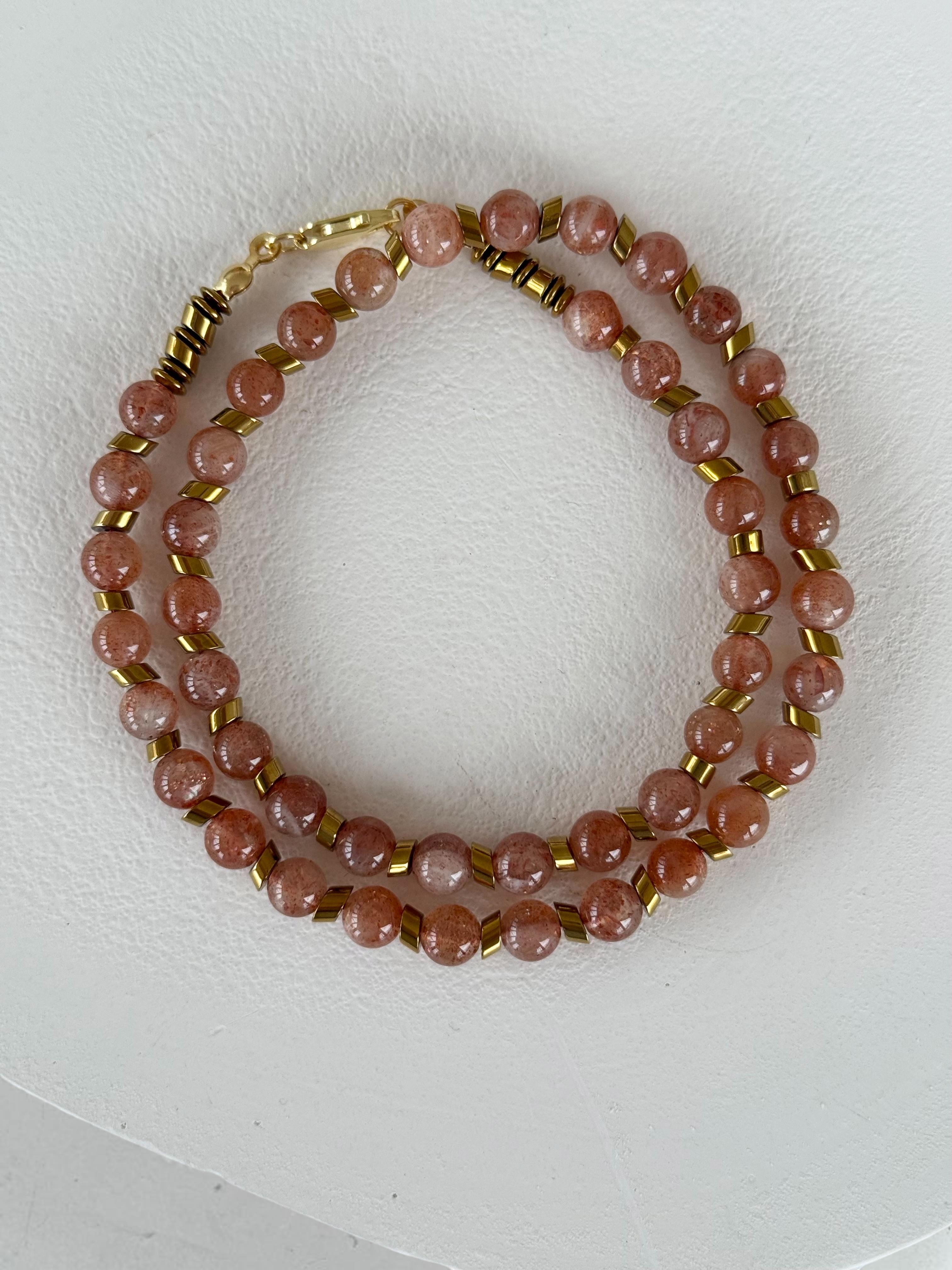 Modelde kullanılan altın renk detaylar Hematit Taşıdır.