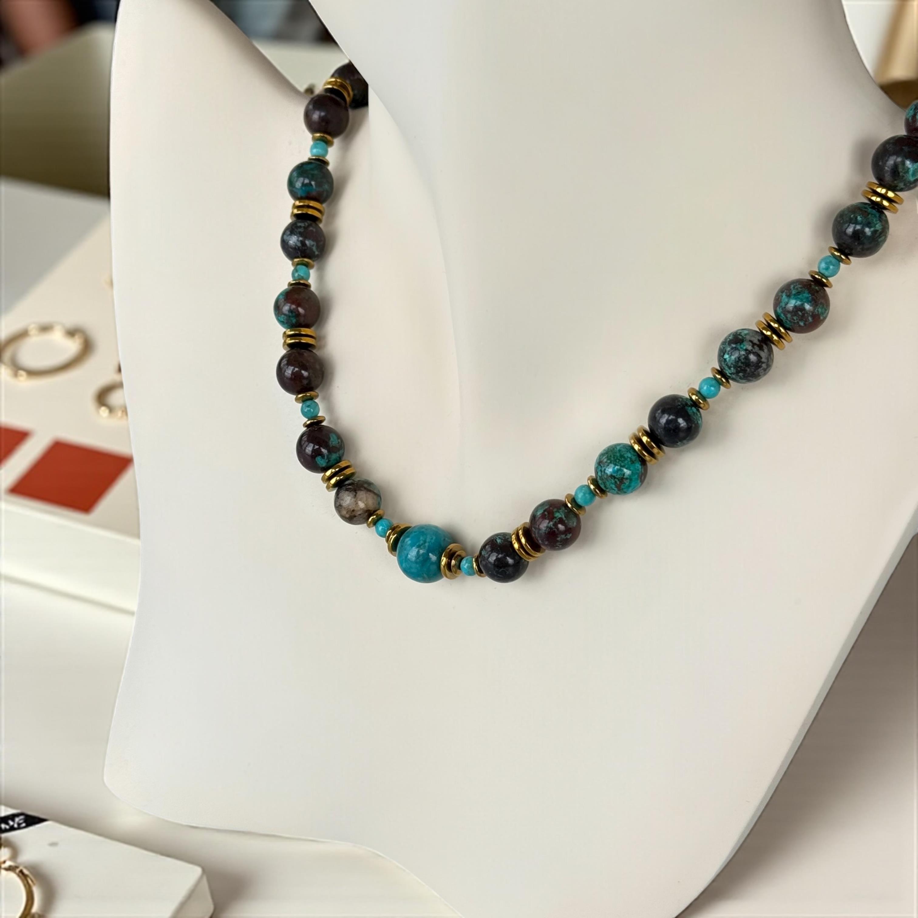 Krizokol & Turkuaz Doğal Taş Kolye