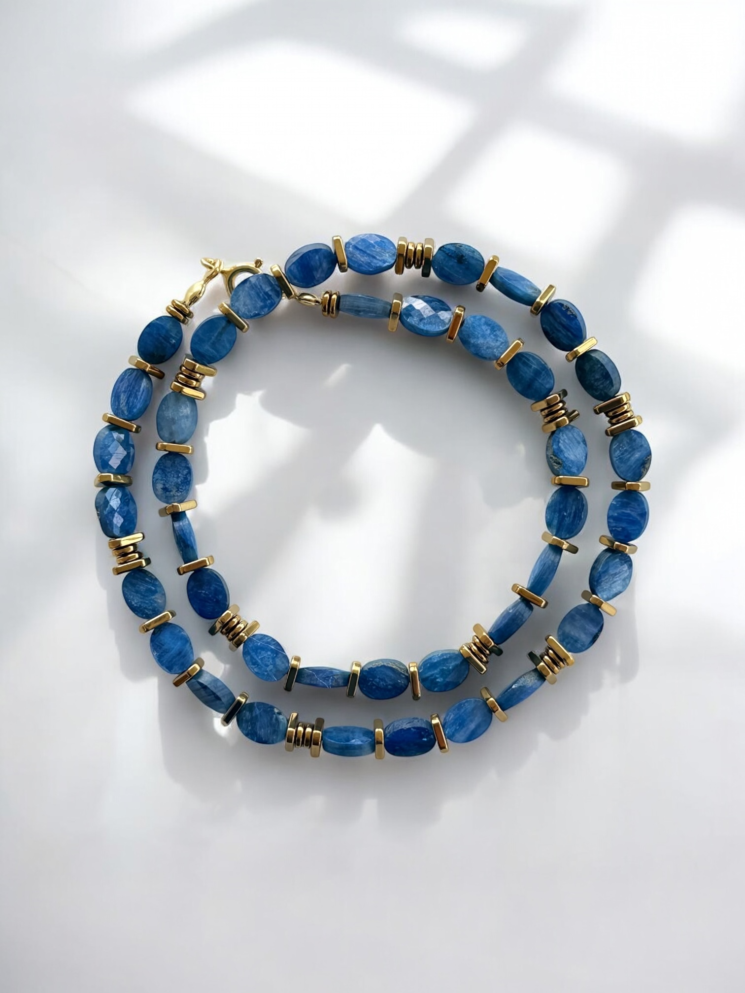 Ortalama 8 mm amorf badem formuna yakın AAA kalite Kyanit Taşları ile hazırlanmıştır.