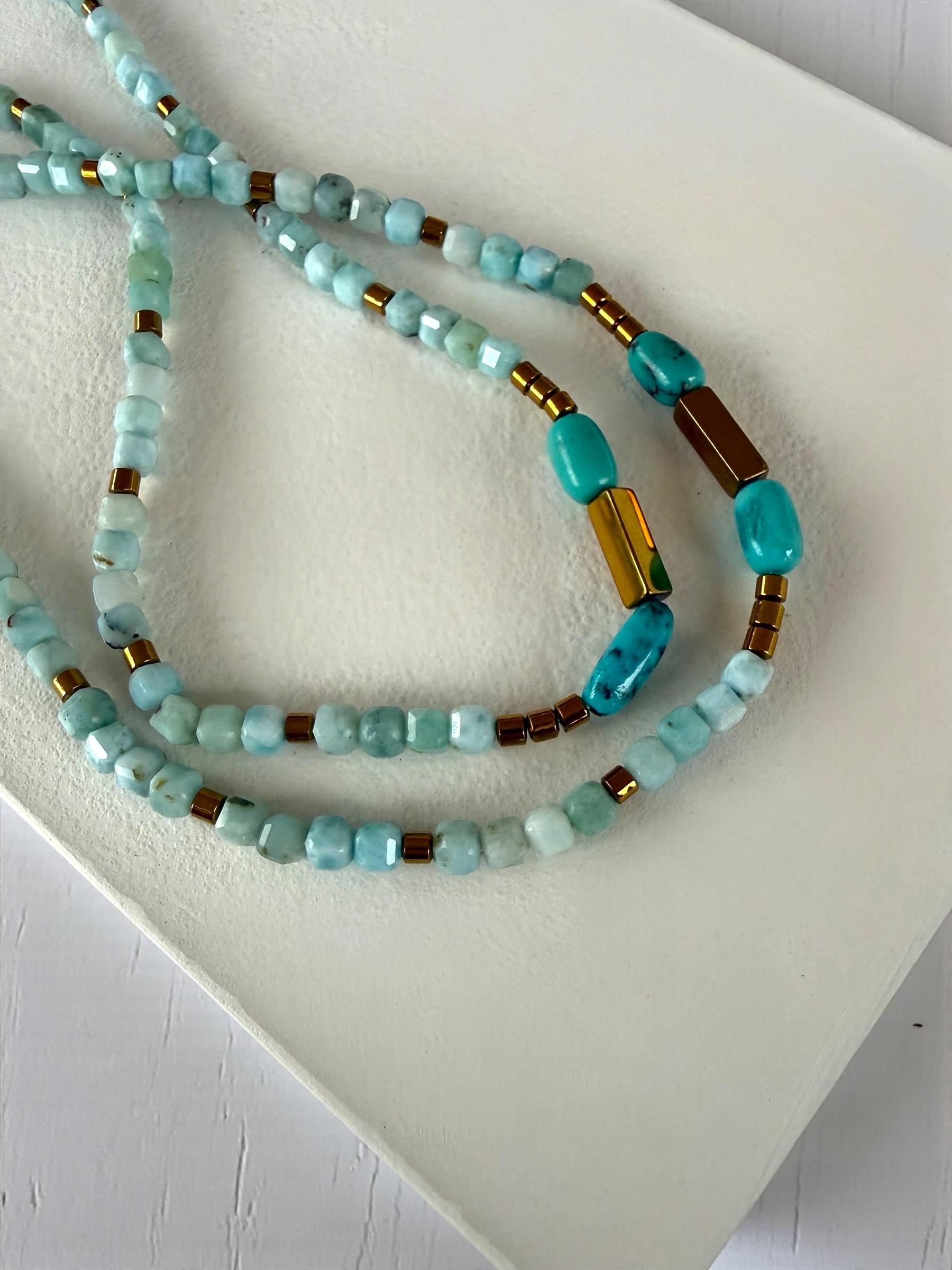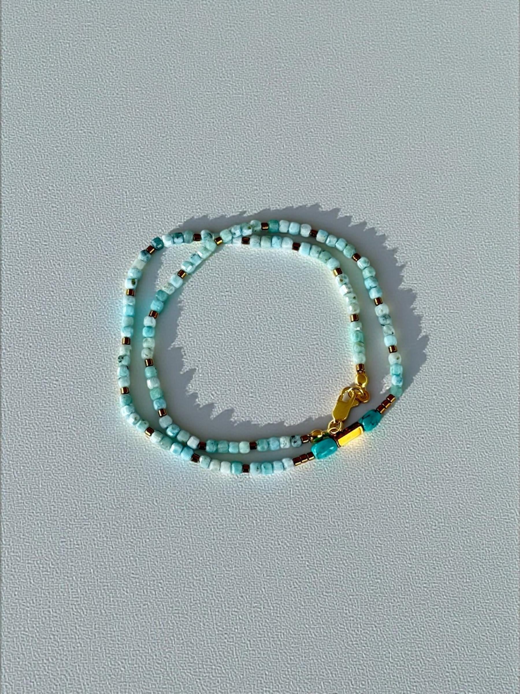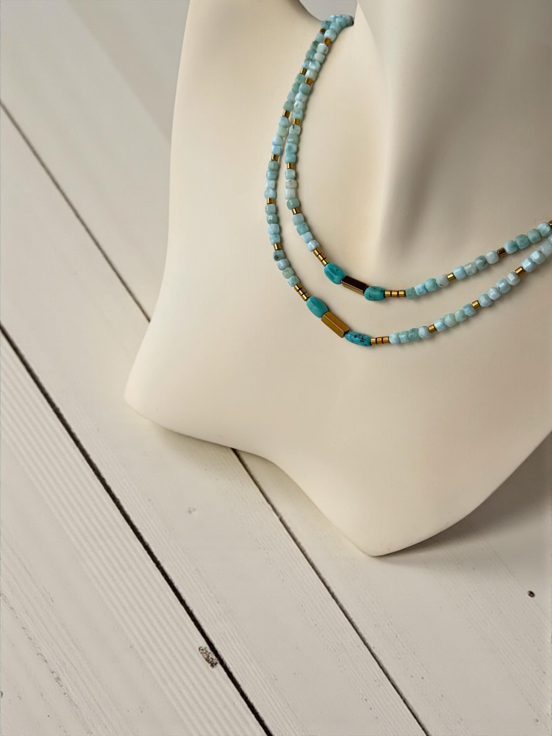Ortalama 3 mm ölçülerinde faset küp kesim Larimar Taşları ile hazırlanmıştır.