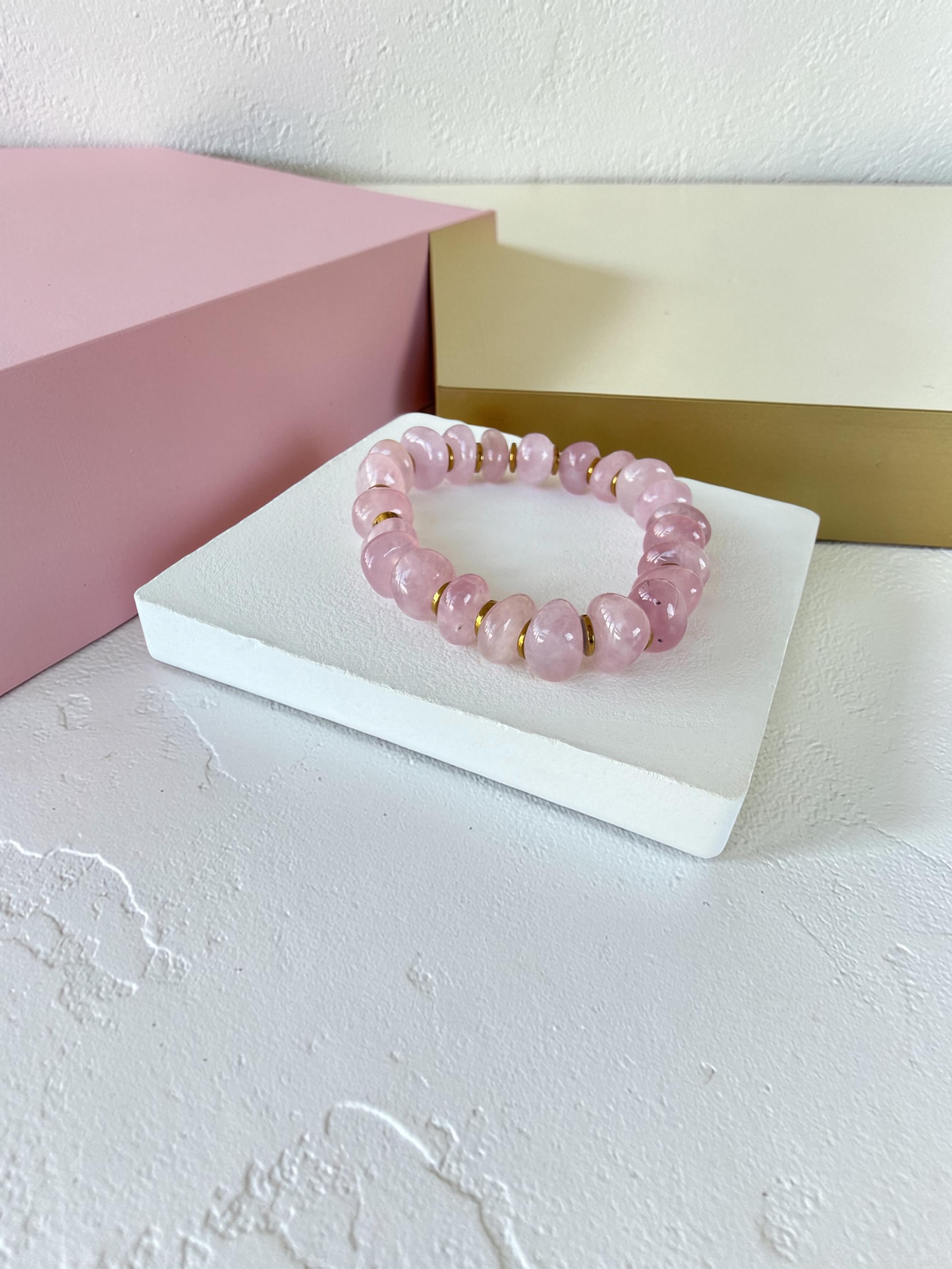 Ortalama 9-10-11 mm şekilsiz Amorf Pembe Kuvars Taşları ile hazırlanmıştır.