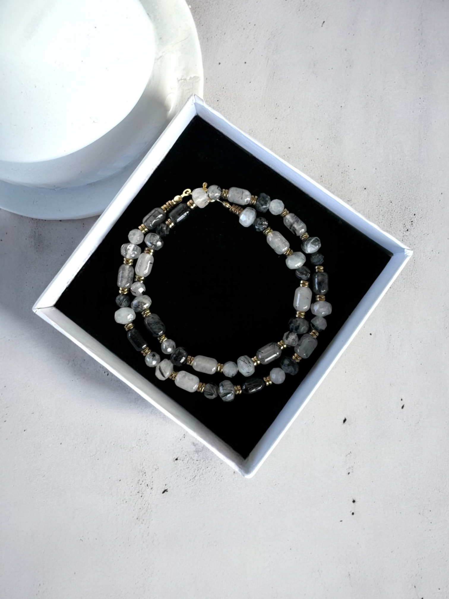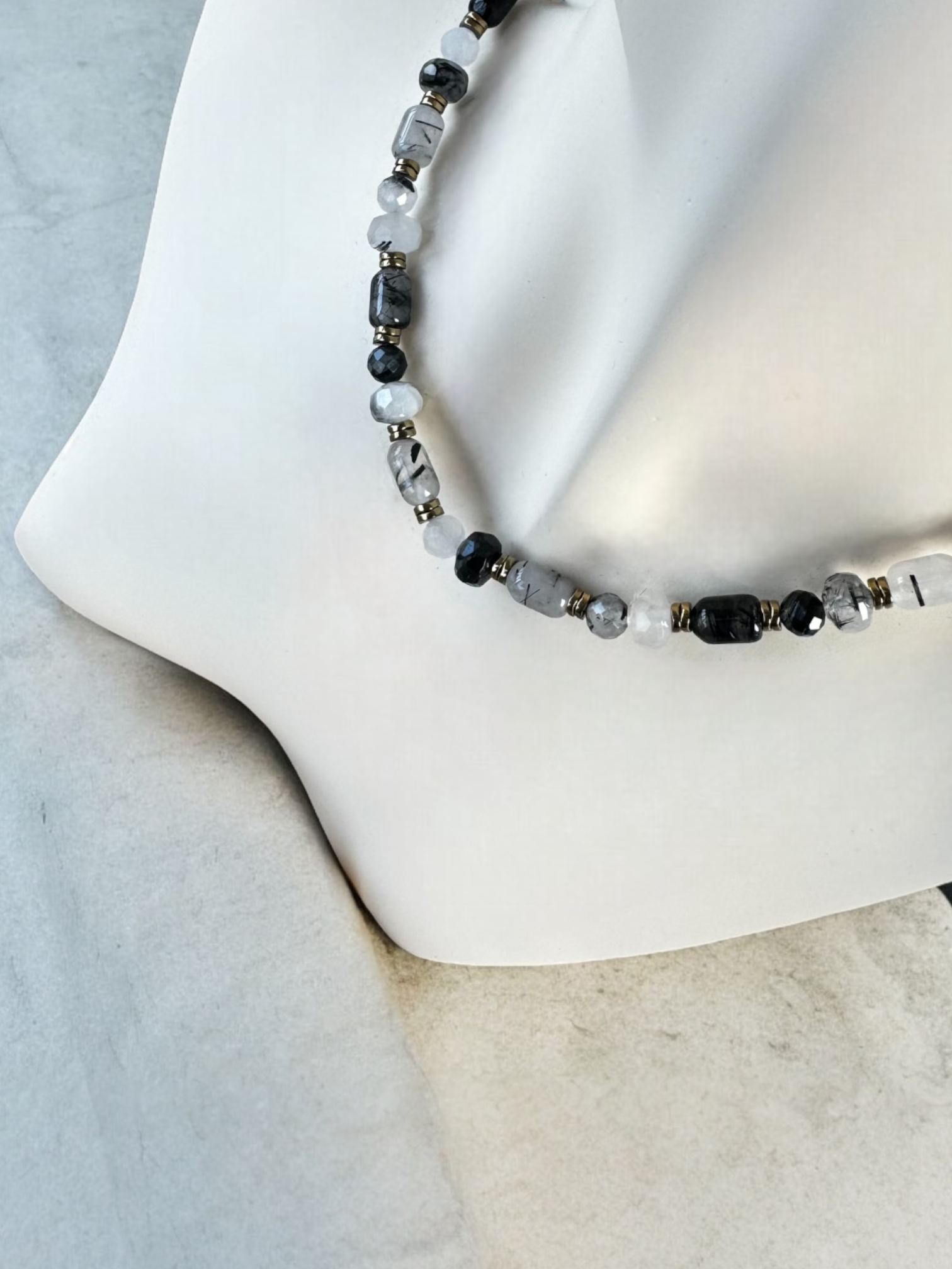 Modelde kullanılan parlak detaylar Hematit Taşıdır.