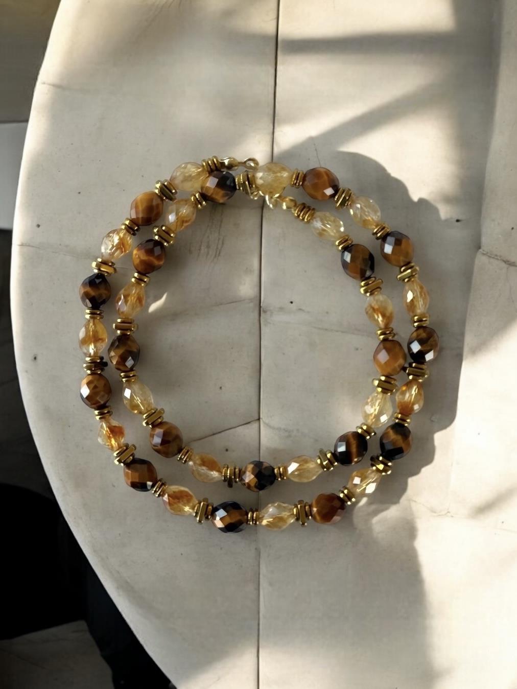 Ortalama 8-6 mm ölçülerinde faset elmas kesim Sitrin ve Kaplangözü taşları ile hazırlanmıştır.