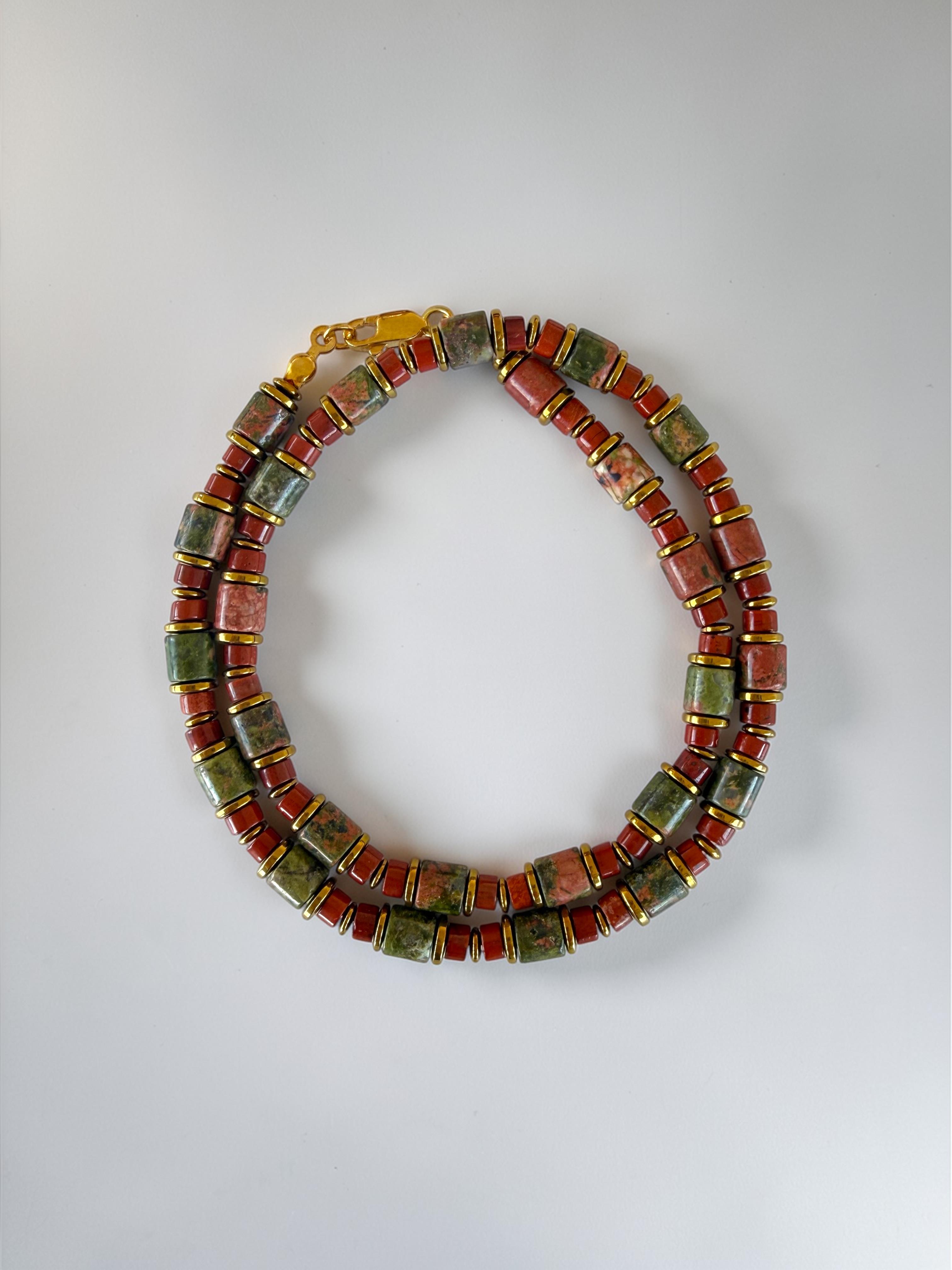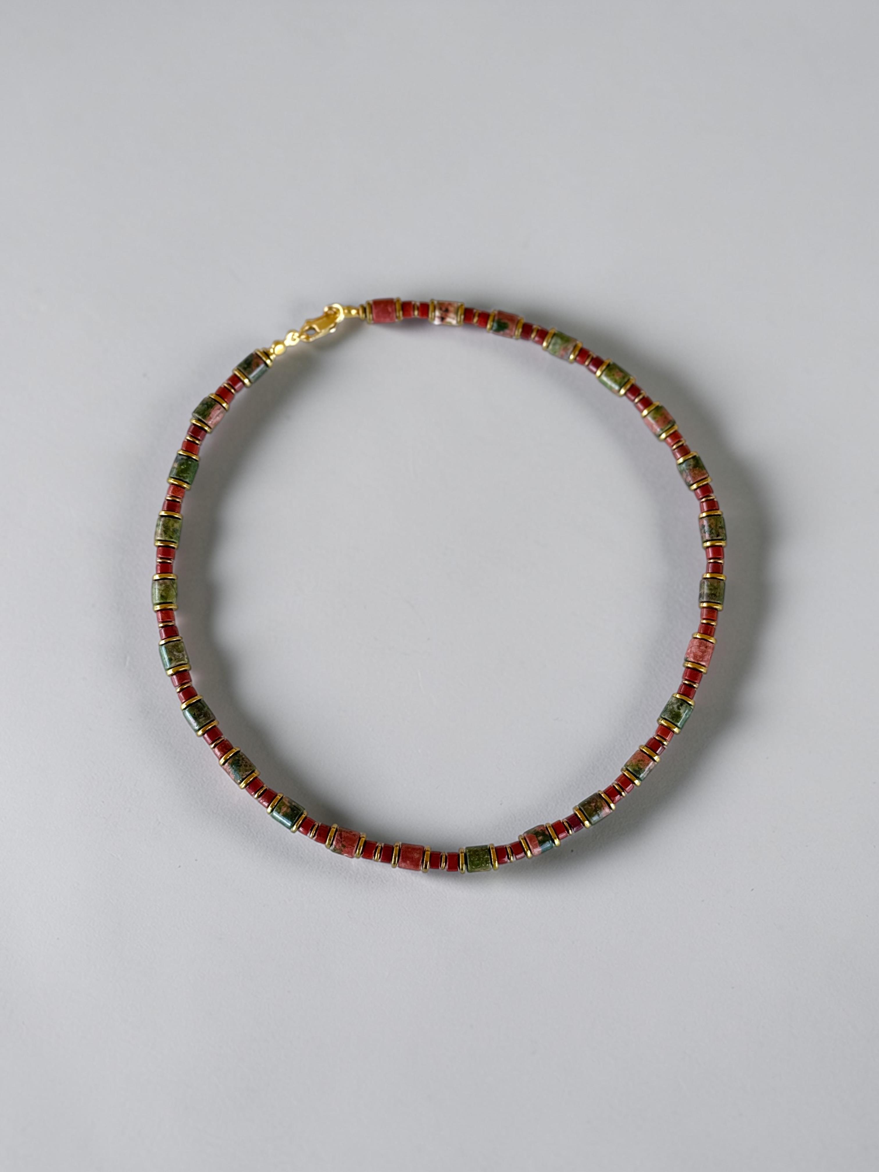 Ortalama 6-7 mm ölçülerinde özel kesim Unakit Taşları ve 3 mm Jasper Taşları ile hazırlanmıştır.