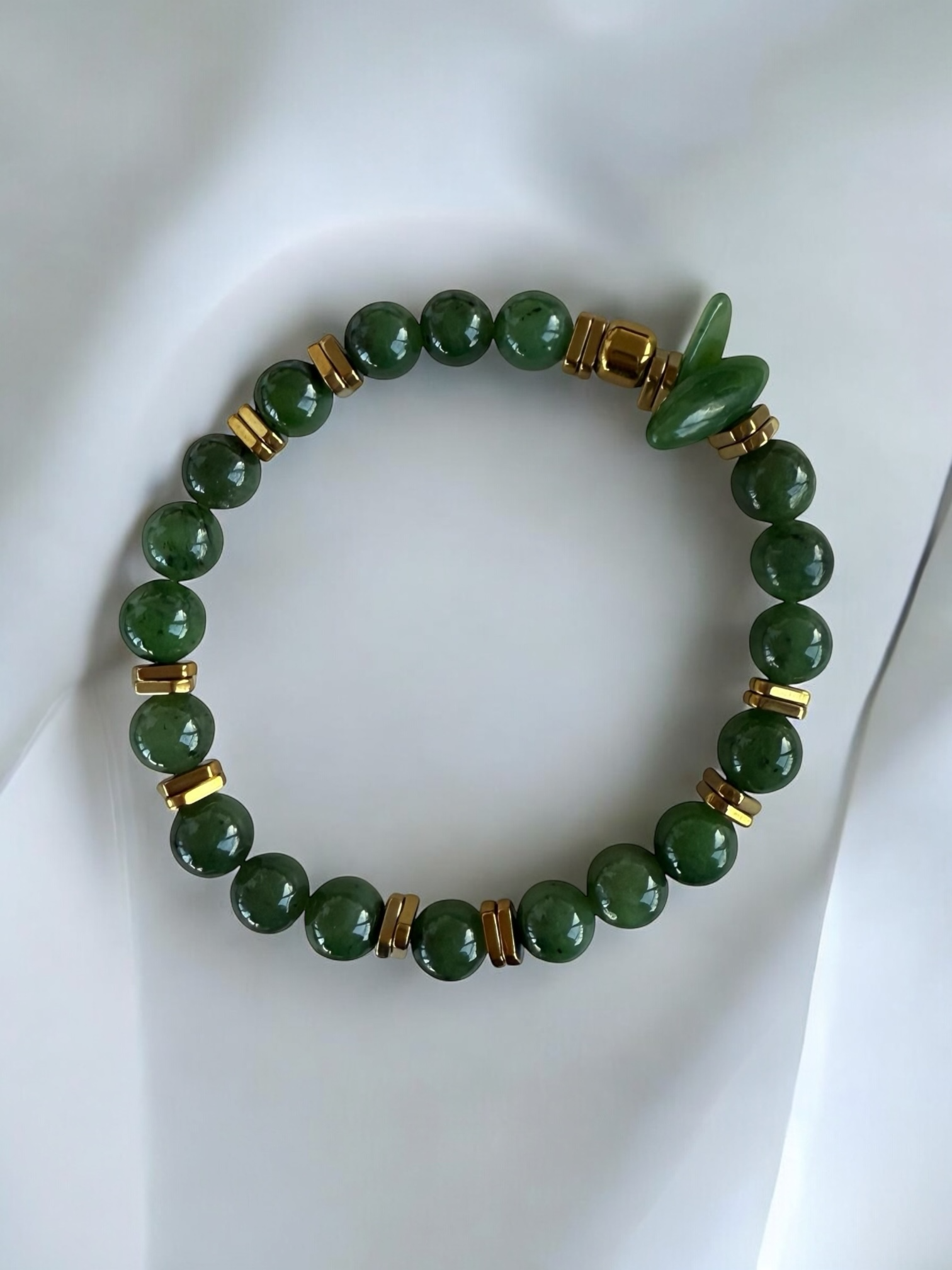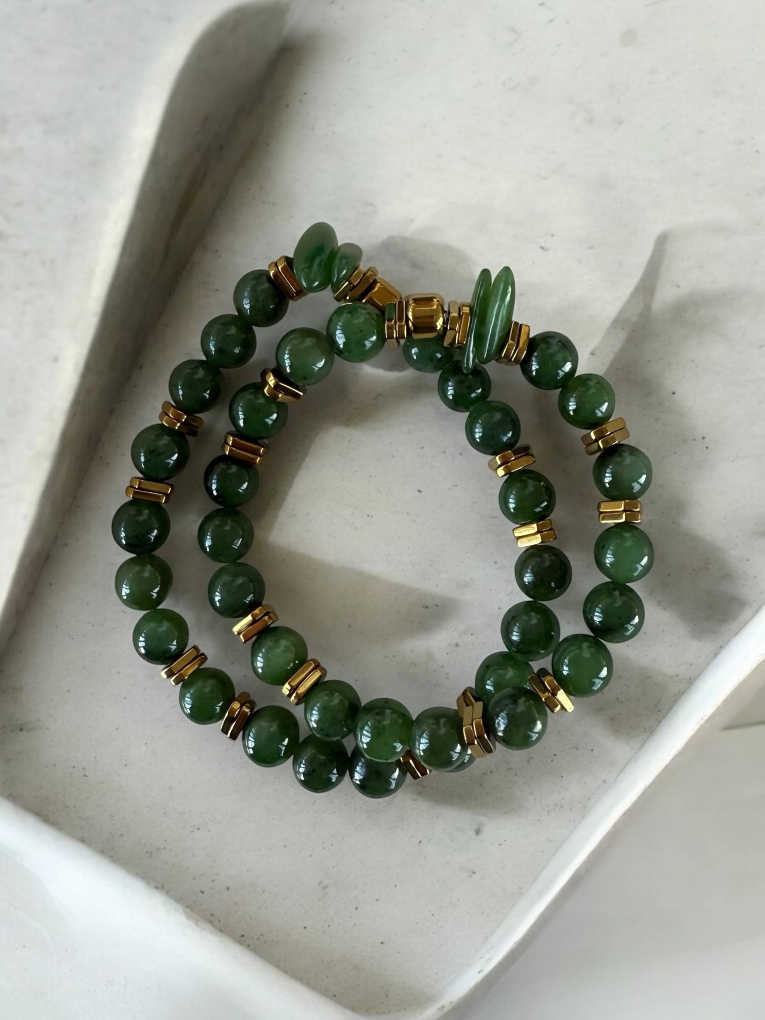 Ortalma 7- 8 mm ölçülerinde küre kesim orijinal ve AAA sınıf kalitede Yeşim Taşları ile hazırlanmıştır.