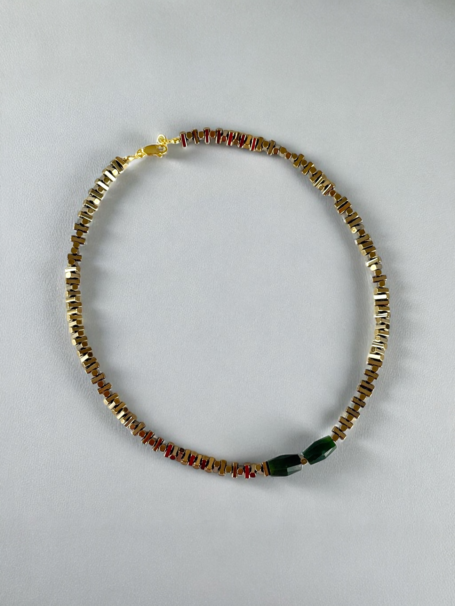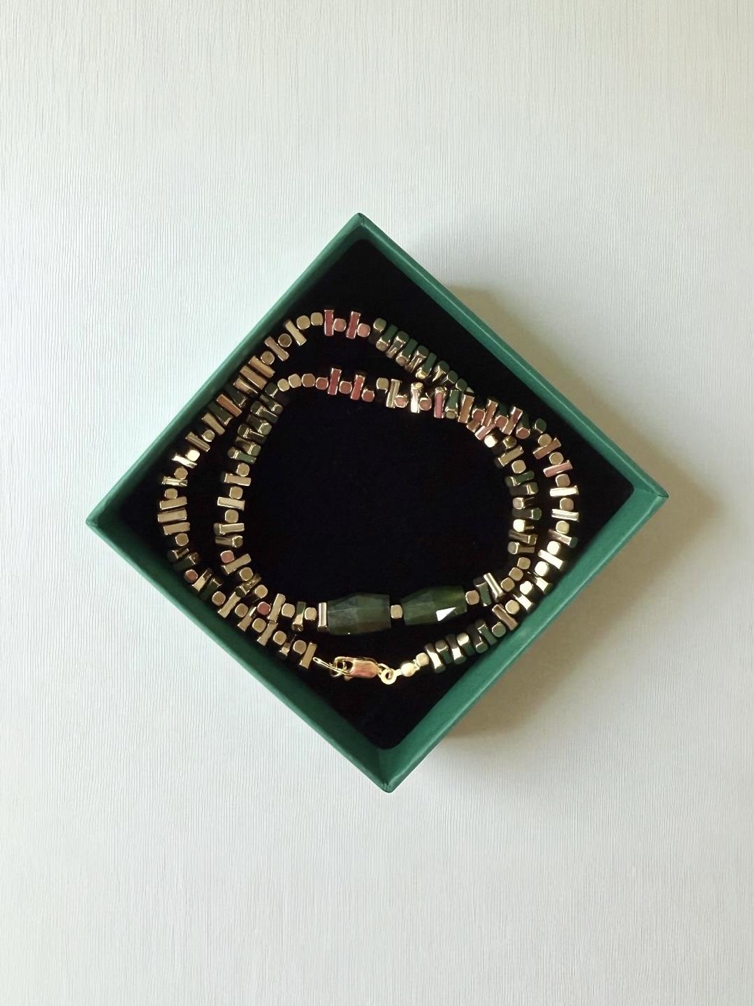 Modelde kullanılan antik açık sarı - gold detaylar Hematit Taşıdır.